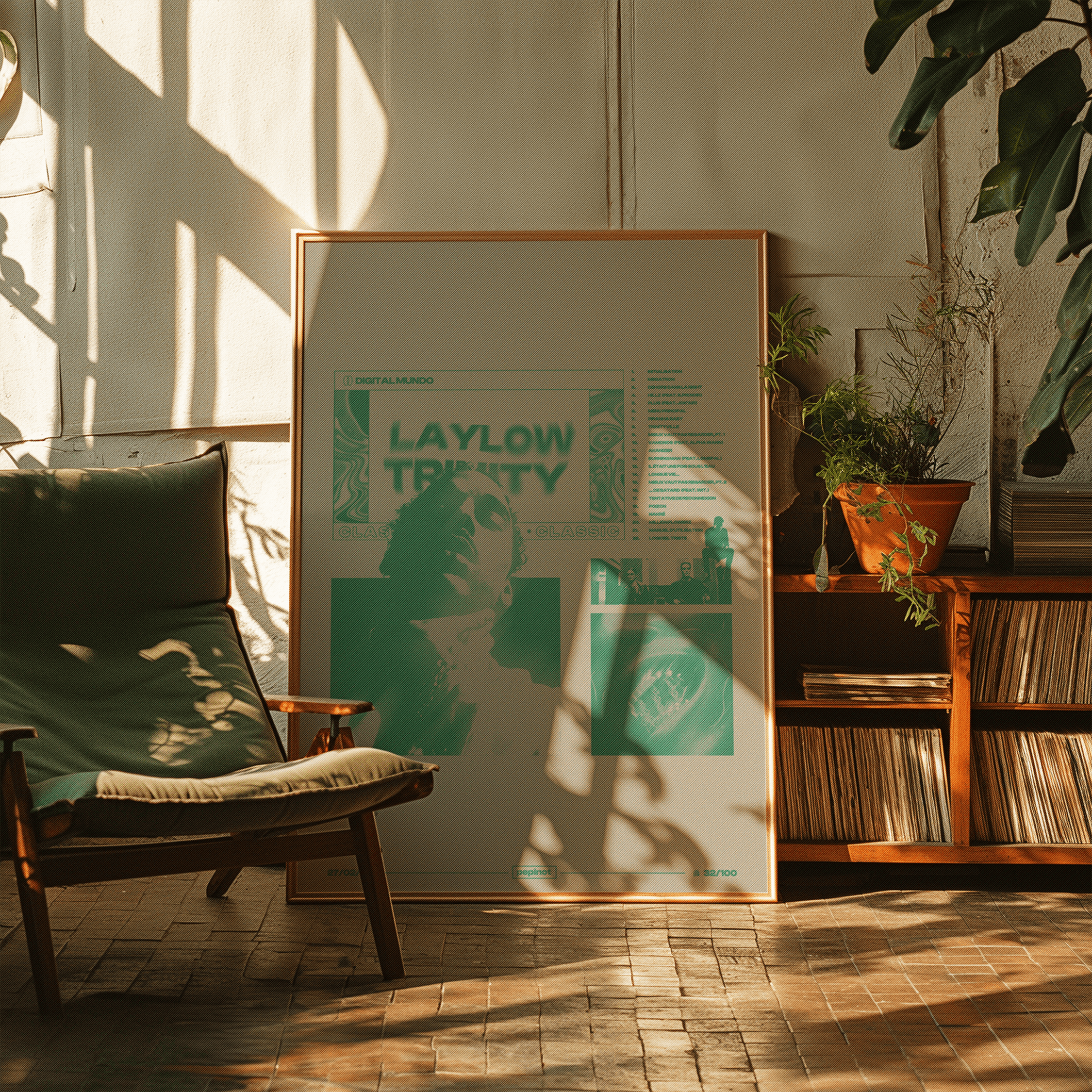 L’ensemble du visuel évoque l’univers numérique et futuriste de Laylow, tout en intégrant des éléments classiques de l’affiche musicale. Les références visuelles et la typographie créent une atmosphère de recherche et d’introspection qui accompagne parfaitement l’ambiance de l’album Trinity.